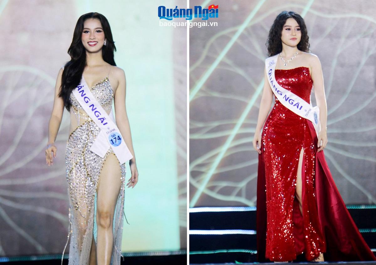 Thí sinh Lê Thị Tường Vy và Lê Thị Nhung đến từ Quảng Ngãi tham gia trình diễn trang phục dạ hội