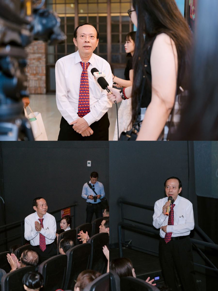 Chủ tịch Hội Điện ảnh Việt Nam Đỗ Lệnh Hùng Tú, TBT Thời Báo Văn học nghệ thuật Hoàng Dự cùng các đạo diễn, nghệ sĩ và êkip diễn viên đoàn phim