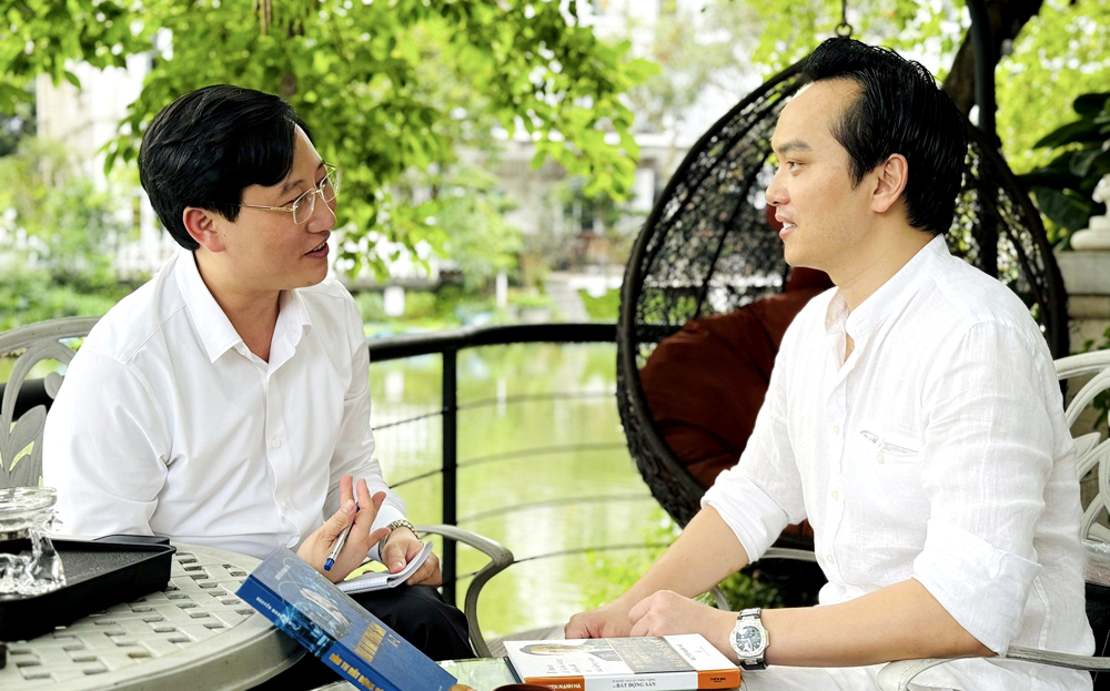 Doanh nhân Nguyễn Mạnh Hà trao đổi với tác giả