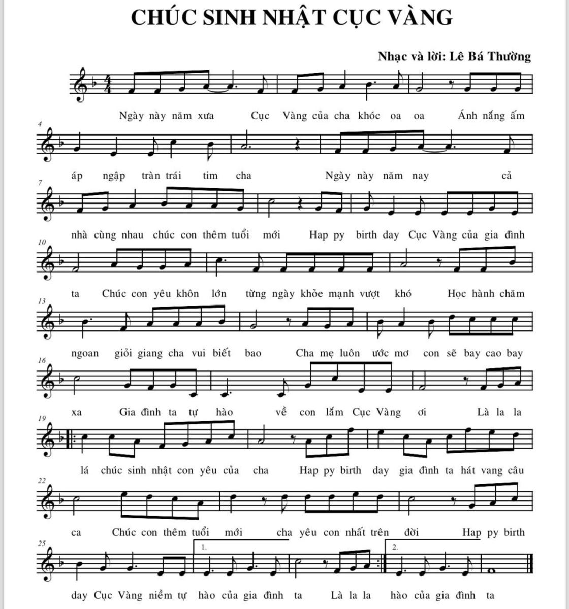 Nhạc và lời ca khúc "Chúc sinh nhật cục vàng"