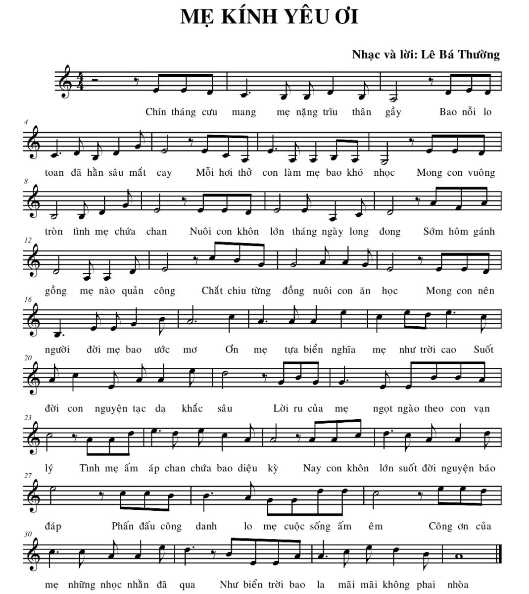 Nhạc và lời ca khúc "Mẹ kính yêu ơi"