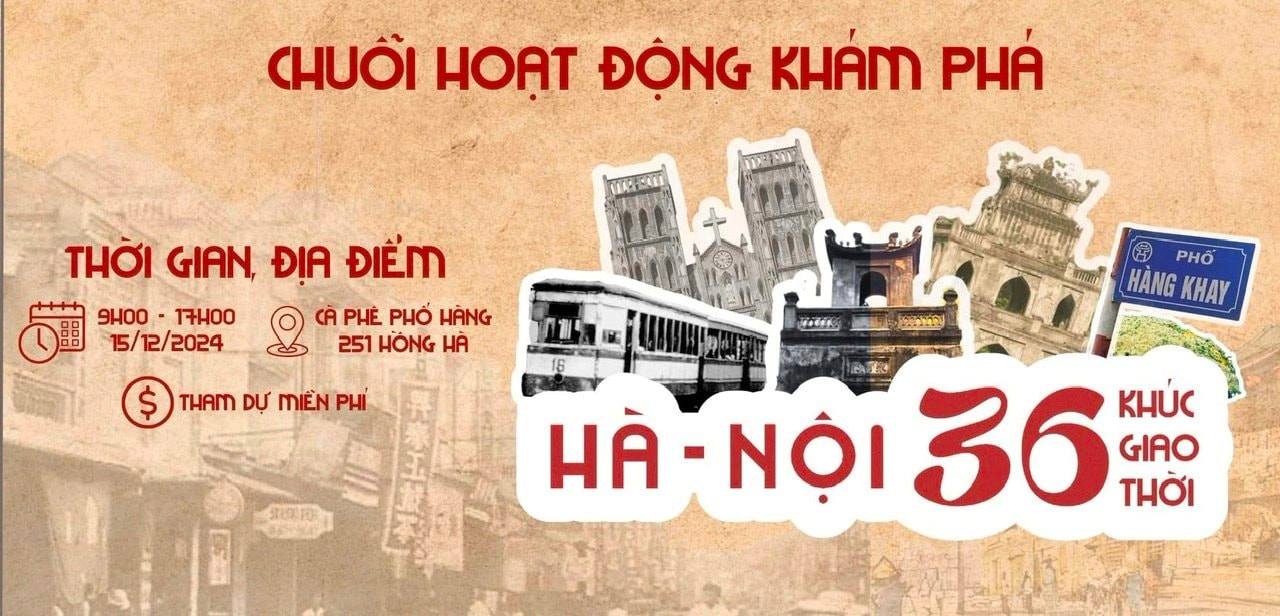 ''Hà Nội - 36 khúc giao thời'' - chuỗi hoạt động khám phá 36 phố phường Hà Nội và những nét văn hóa đặc sắc từ Hà Nội xưa sẽ diễn ra vào ngày 15/12/2024 tại Cafe Phố Hàng (251 Phố Hồng Hà, Phường Phúc Tân, Quận Hoàn Kiếm, Hà Nội). Đến với không gian mang đậm dấu ấn đặc trưng của từng góc phố cổ Hà Nội, công chúng, đặc biệt là giới trẻ sẽ có cơ hội khám phá và hiểu hơn những giá trị văn hóa của Thủ đô.