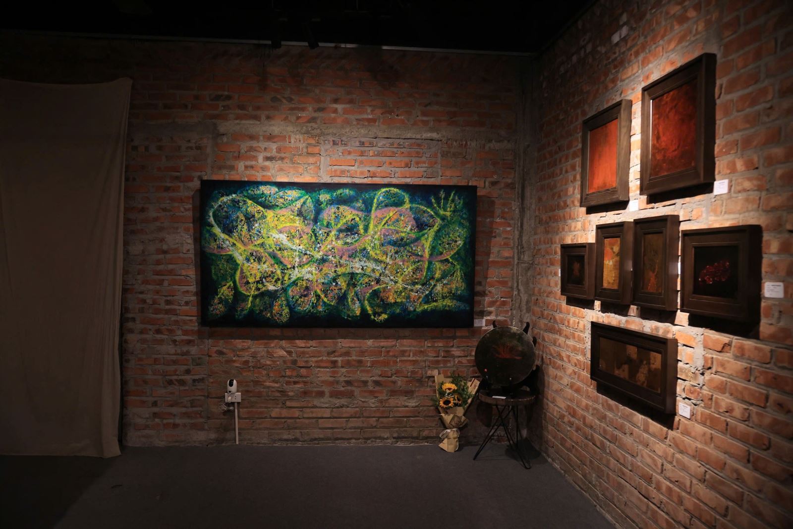 Đến với lần trưng bày ra mắt này họa sĩ Nguyễn Quang Tùng mang tới 6 tác phẩm bằng chất liệu Sơn mài hết sức ấn tượng và hút mắt người xem. Anh cho biết: “Tôi sinh ra và lớn lên tại một vùng quê Trung Du, Bắc Trung Bộ. Đã thấm vào tôi tự bao giờ, cái không gian và con người chịu thương, chịu khó, nhọc nhằn, một nắng hai sương trên cánh đồng thửa ruộng bờ tre gốc mít. Tôi đang như một người chép sử bằng hình ảnh qua lăng kính của tôi nhưng hiện tại bây giờ không còn nguyên vẹn như thế, tôi muốn lưu lại những kí ức đó. Tôi vẫn còn rất nhiều thứ để khai thác, tiếp nối mạch…?"
