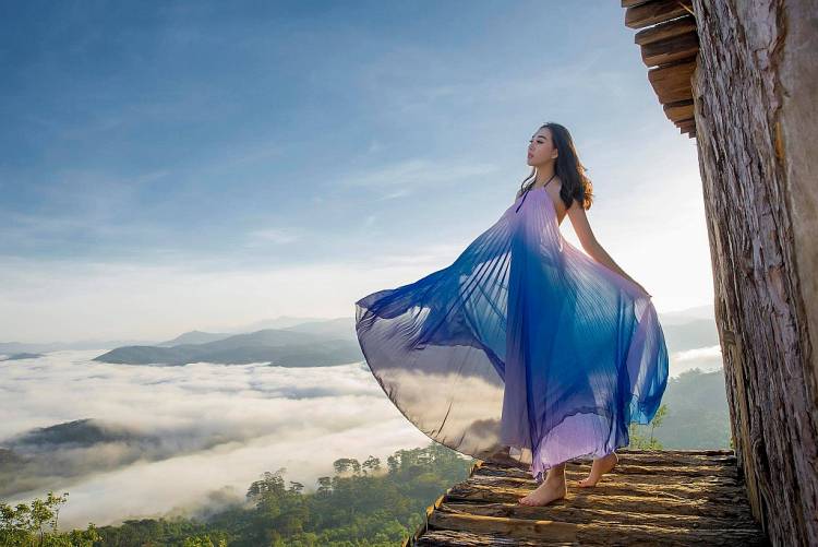 Có thể nói, bối cảnh Đà Lạt là một lựa chọn không thể phù hợp hơn để Huỳnh Thúy Anh khoe ra tất cả những vẻ đẹp thanh thoát và quyến rũ của mình, một hình ảnh cực kỳ cuốn hút nhưng cũng không kém phần ấn tượng giữa mây trời. Được biết, địa điểm xuất hiện trong bộ ảnh của nàng hậu chính là Cầu gỗ săn mây - một trong những địa điểm du lịch đang “hot hit” nhất nhì thành phố ngàn hoa.