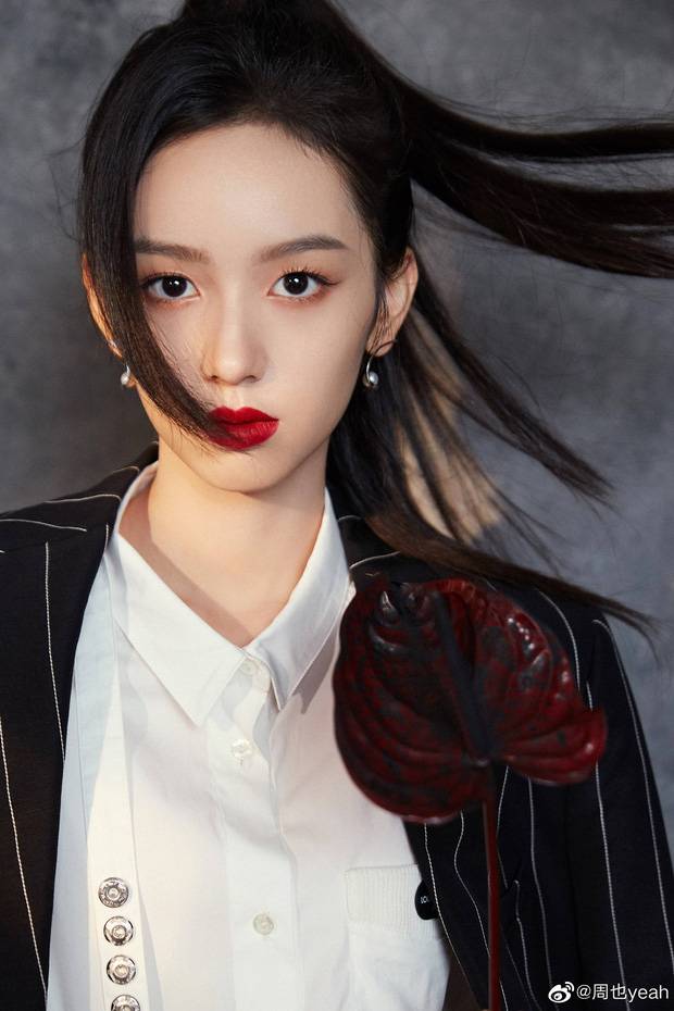 Đường Yên thì lại chọn bộ suit với quần short ngắn. Cô nàng diện một thiết kế sơ mi cột nơ voan ở cổ, diềm bèo nhún quý tộc dọc hai bên cúc áo, đối lập với áo khoác ngoài có kiểu dáng oversized trẻ trung.