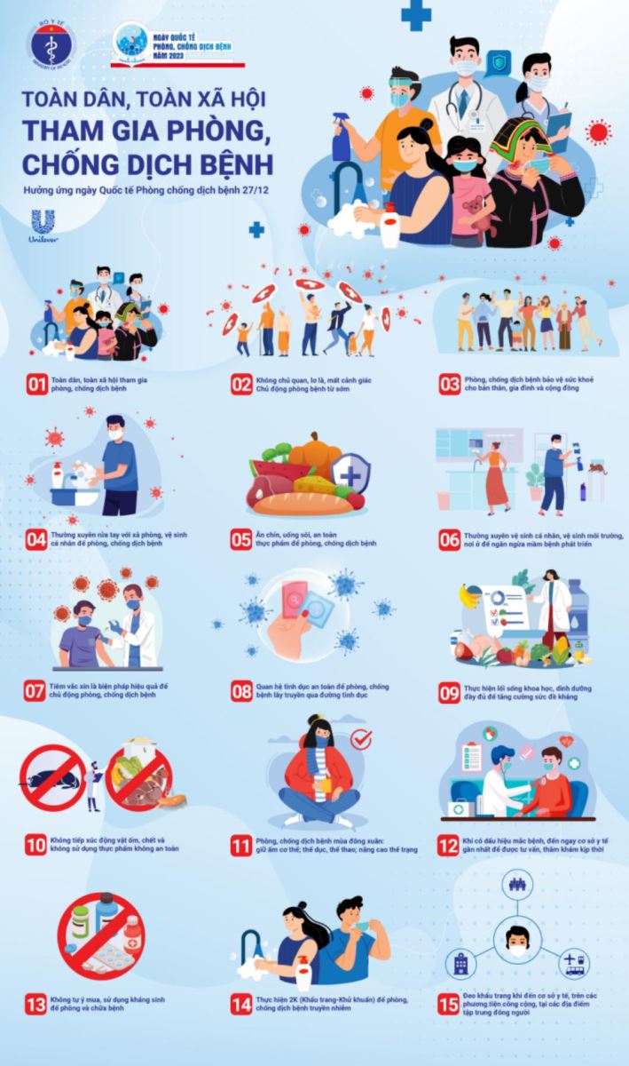 Ngày 27 tháng 12 năm 2023, tại Hà Nội, Bộ Y tế đã tổ chức Lễ Mít-tinh hưởng ứng Ngày Quốc tế Phòng chống dịch bệnh với sự tham gia của lãnh đạo các Bộ, Ban, ngành địa phương, các cơ quan tổ chức quốc tế tại Việt Nam, với sự đồng hành của Unilever. Đây là một trong số những hoạt động Unilever phối hợp cùng Bộ Y tế nhằm tăng cường ý thức và tham gia của toàn xã hội trong việc phòng chống dịch bệnh.