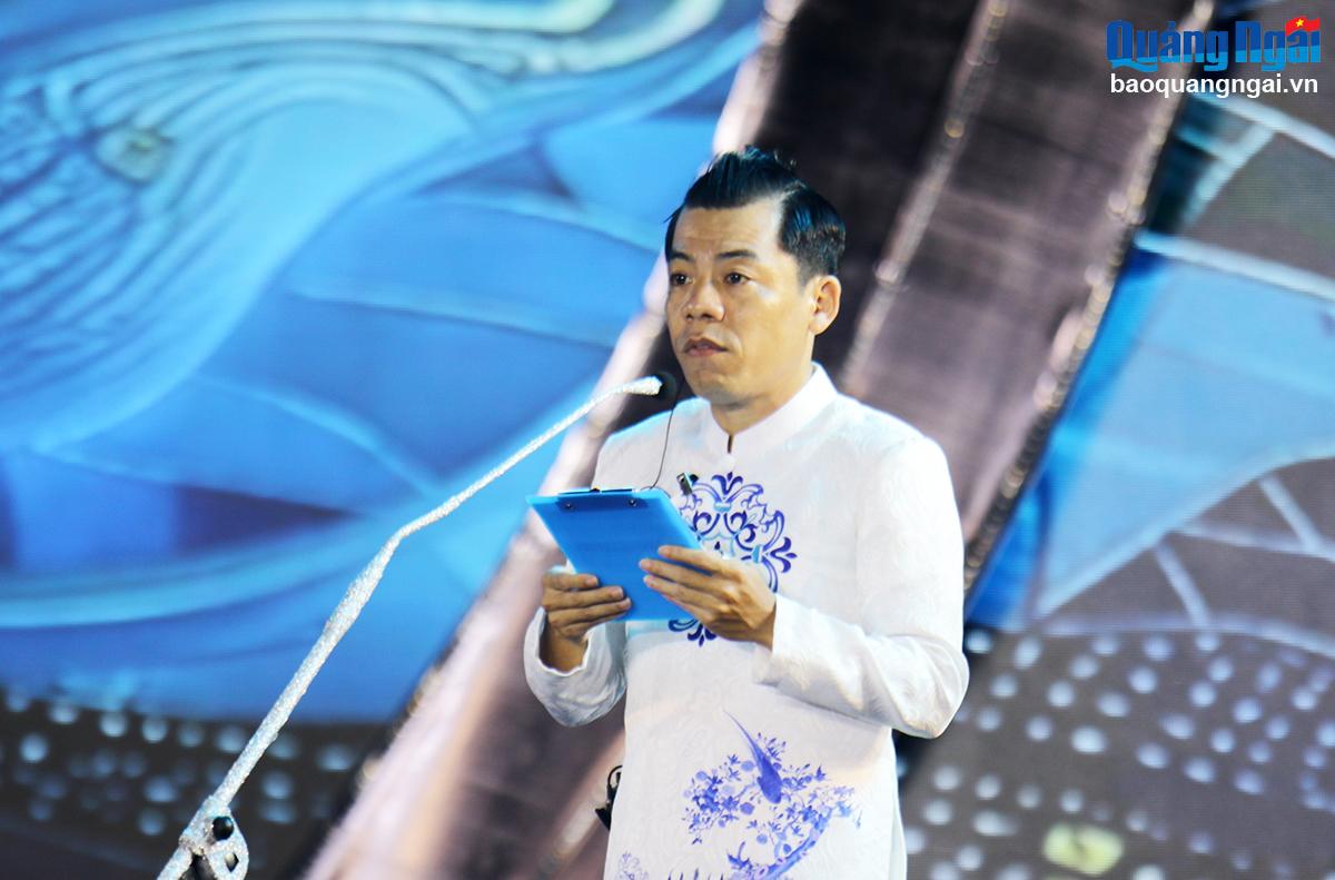 Nhà thiết kế Tạ Linh Nhân - Trưởng ban Tổ chức cuộc thi Hoa hậu Du lịch bản sắc Việt Nam 2024 phát biểu khai mạc đêm chung kết