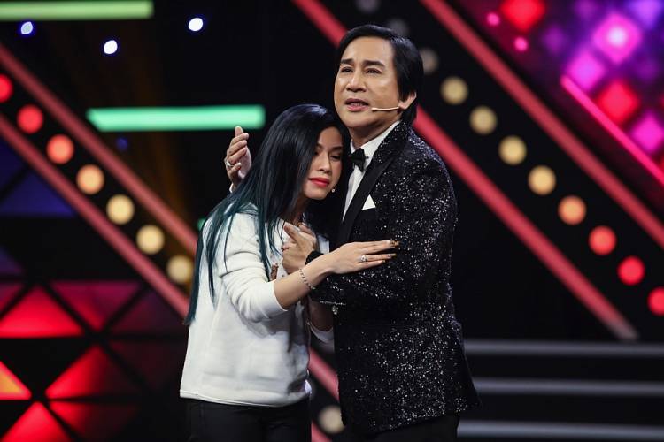 Nhận được sự cổ vũ của Việt Hương, Kim Tử Long nói rằng muốn ôm thân mật đồng nghiệp một cái, lập tức anh bị nữ danh hài “phàn nàn” là “vậy mà làm liveshow không mời” khiến cả khán phòng cười òa.