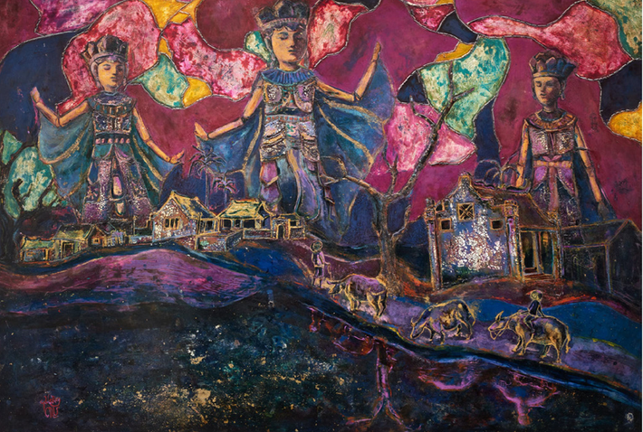 Một tác phẩm tranh sơn mài của họa sĩ Chu Nhật Quang