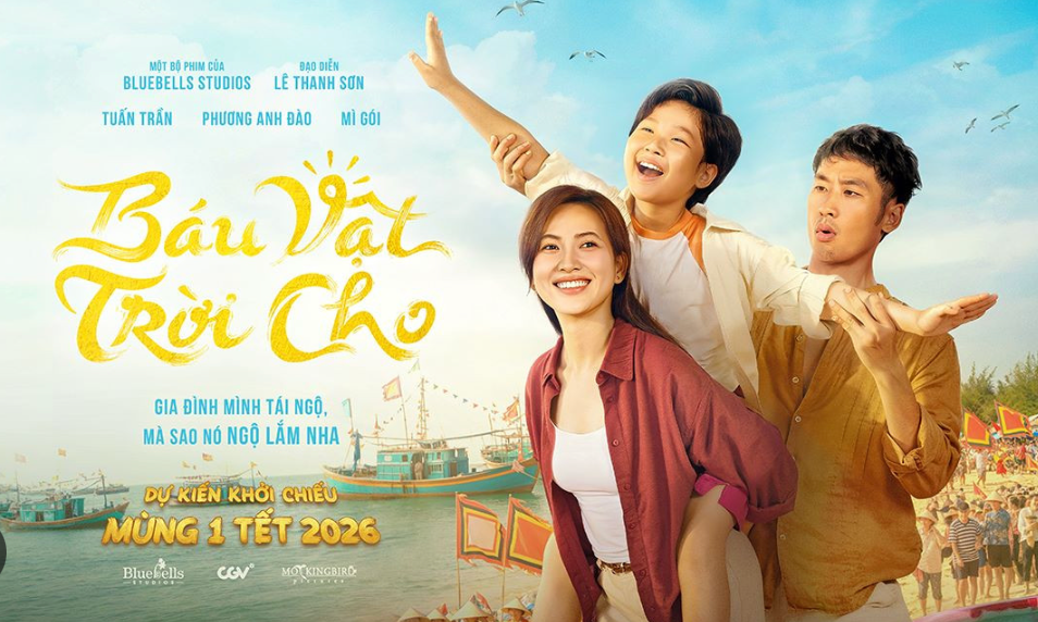 Ra rạp dịp Mùng 1 Tết và là tác phẩm duy nhất chiếu định dạng IMAX trong mùa lễ năm nay, “Báu vật trời cho” gây chú ý ngay từ bộ poster lấy cảm hứng từ trò chơi dân gian Việt Nam.