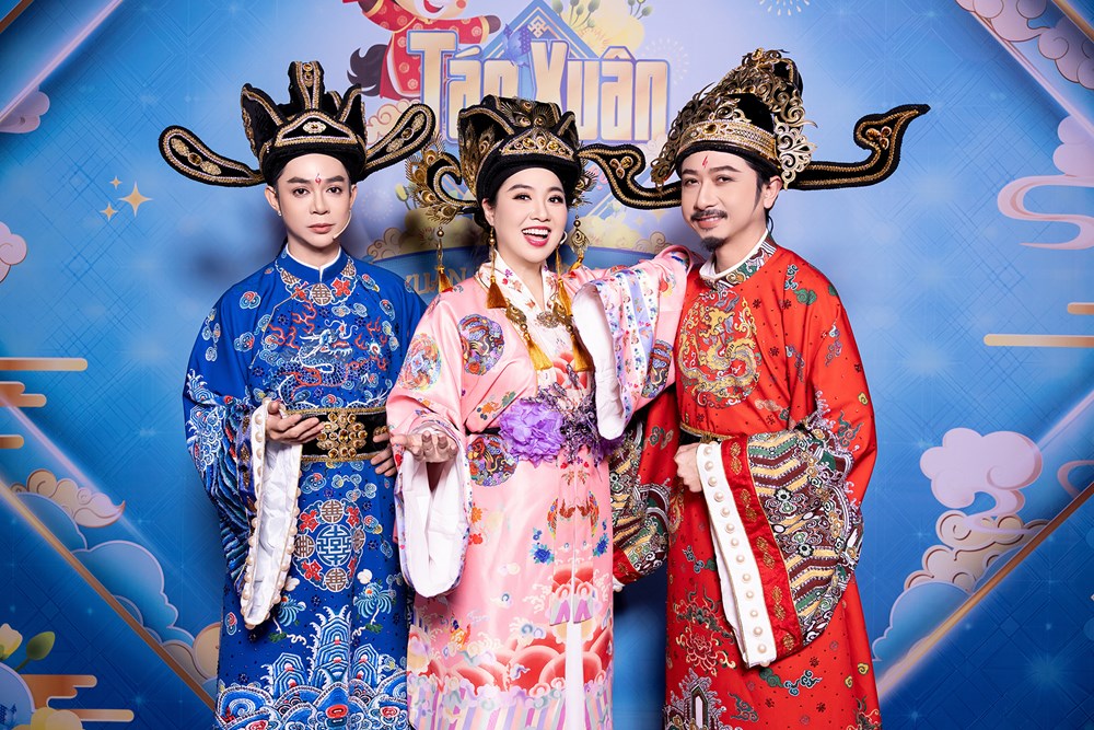 Ba Táo gồm táo bà Lê Khánh, táo ông Hứa Minh Đạt (bìa phải) và táo ông Tuấn Kiệt trong tạo hình Táo Xuân 2026