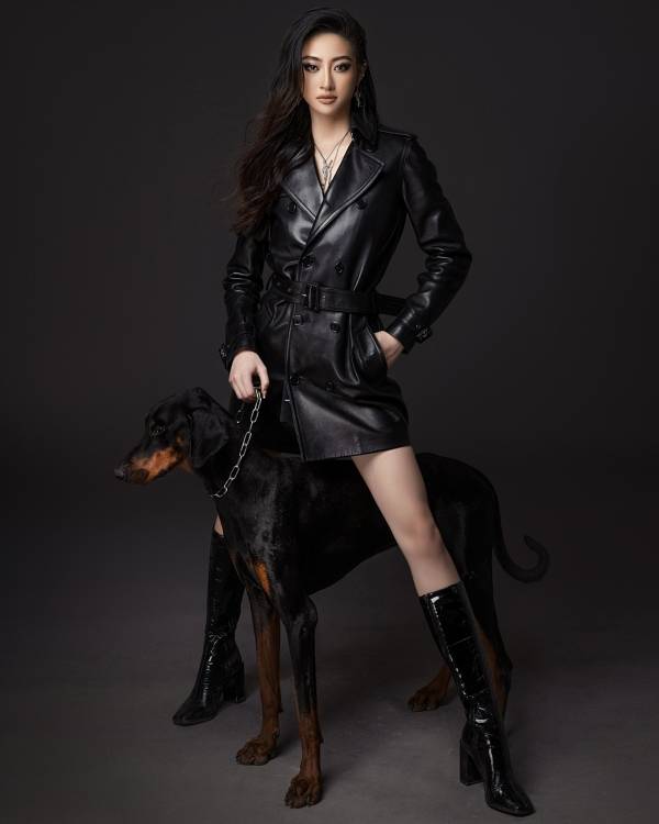 Ở một layout khác, nàng hậu xuất hiện với cách phối đồ “all-black”. Với phong cách “đen toàn tập” này, Lương Thùy Linh trông thật ngầu và bí ẩn vô cùng. Diện mốt “giấu quần” cùng áo khoác da và boots cao cổ, phong cách “vượt thời gian” này luôn dẫn đầu xu hướng và là lựa chọn tối ưu dành cho những quý cô hiện đại muốn thể hiện tinh thần “girl boss”.