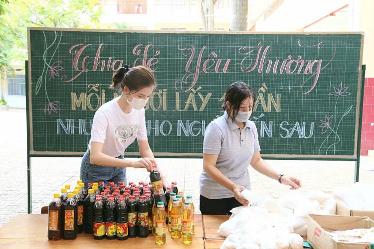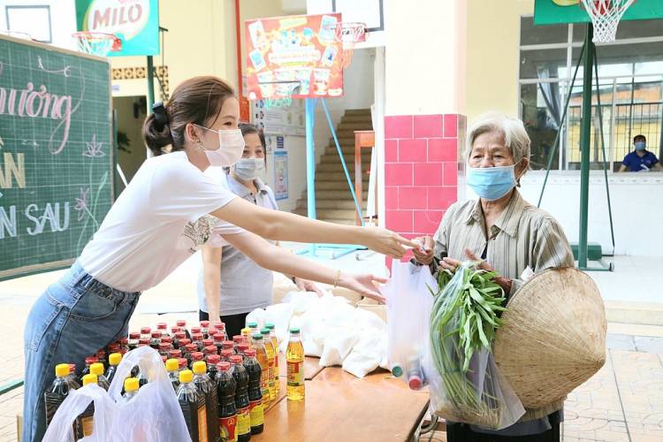 Tiếp đến, hưởng ứng chiếc dịch “Chợ 0 đồng” nơi chia sẻ yêu thương, hỗ trợ bà con lao động khó khăn bị ảnh hưởng bởi dịch Covid-19 trên địa bàn TP Cần Thơ, Hoa khôi Huỳnh Thúy Vi lập tức chung tay cứu trợ với những nhu yếu phẩm thiết thực như: nước tương, nước mắm, trứng gà, dầu ăn, đường, gạo, rau củ quả tươi sống, khẩu trang y tế… Huỳnh Thúy Vi đã trút bỏ hình ảnh Hoa khôi lộng lẫy trên sân khấu trở thành một cô tình nguyện viên năng động: mua, vận chuyển những nhu yếu phẩm đến nơi tập kết và tận tay chia cho những người nghèo, người già khó khăn.