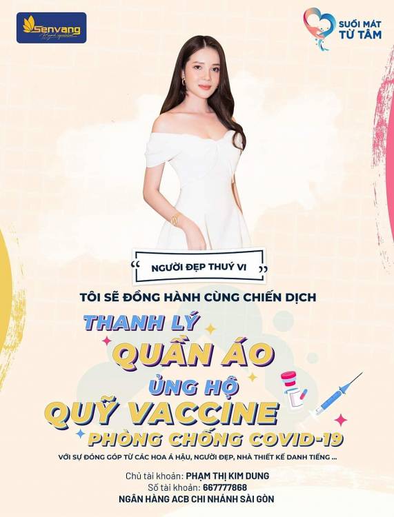 Tình hình dịch bệnh tại TP.HCM vẫn liên tục diễn biến phức tạp khiến đời sống của người dân gặp nhiều ảnh hưởng, đặc biệt là những bà con lao động nghèo nay lại càng gặp nhiều khó khăn hơn. Được góp phần san sẻ những khó khăn đó, Huỳnh Thúy Vi hi vọng đại dịch mau qua trả lại cuộc sống bình yên cho chúng ta. Các mạnh thường quân, nhà hảo tâm nếu muốn cùng lan tỏa yêu thương đến với mọi người thì cũng có thể trực tiếp quyên góp hiện vật cũng như hiện kim cho Bếp ăn từ thiện của CLB Suối mát từ tâm.