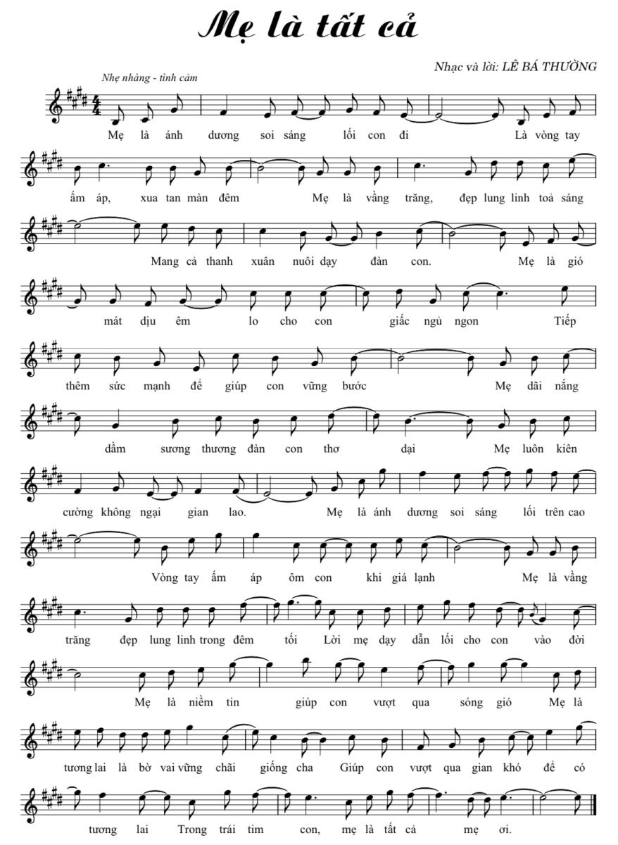 Nhạc và lời ca khúc "Mẹ là tất cả"
