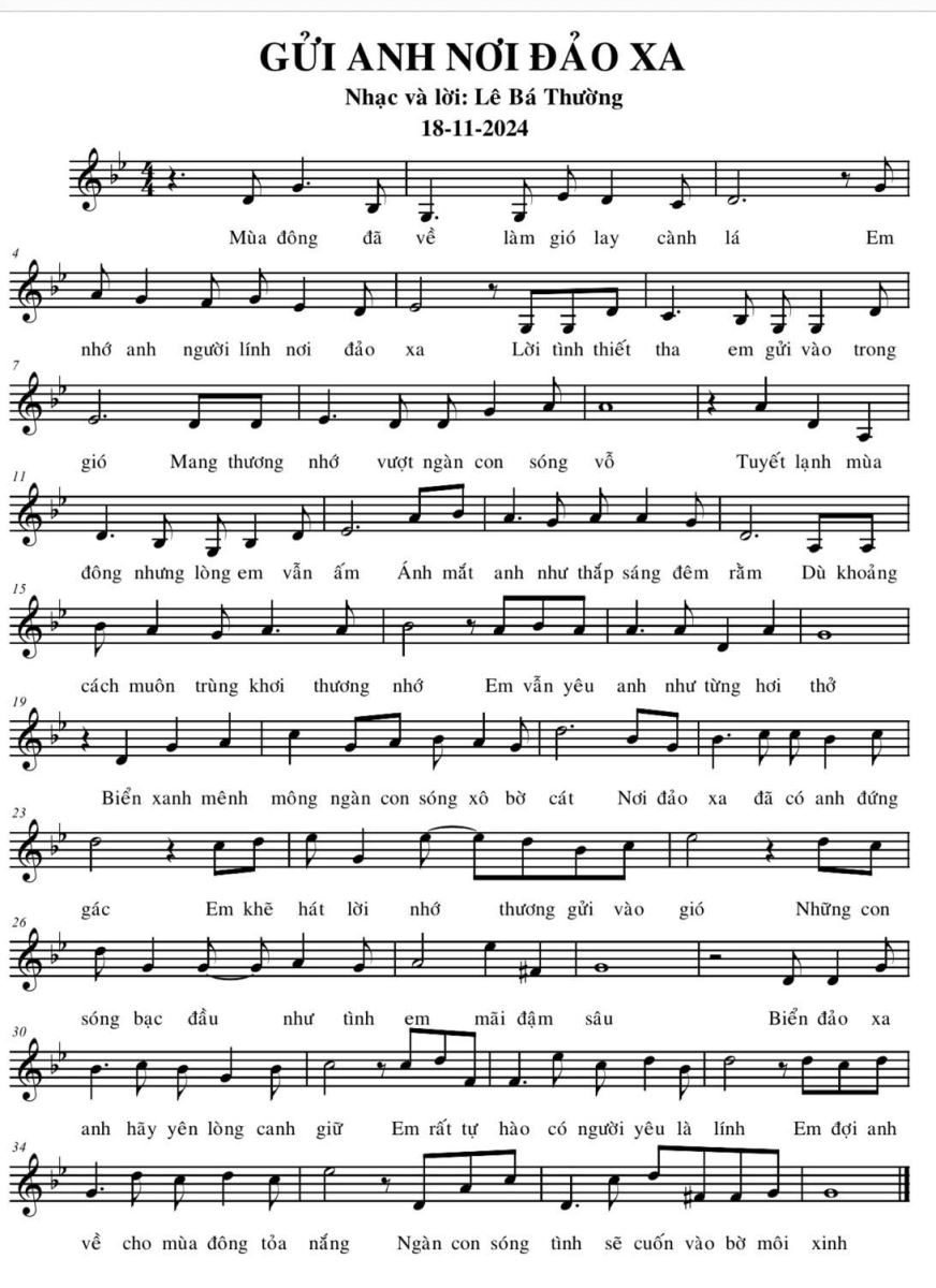 Nhạc và lời ca khúc Gửi anh nơi đảo xa