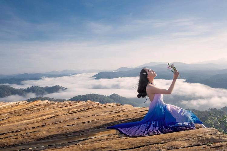 Có thể nói, bối cảnh Đà Lạt là một lựa chọn không thể phù hợp hơn để Huỳnh Thúy Anh khoe ra tất cả những vẻ đẹp thanh thoát và quyến rũ của mình, một hình ảnh cực kỳ cuốn hút nhưng cũng không kém phần ấn tượng giữa mây trời. Được biết, địa điểm xuất hiện trong bộ ảnh của nàng hậu chính là Cầu gỗ săn mây - một trong những địa điểm du lịch đang “hot hit” nhất nhì thành phố ngàn hoa.