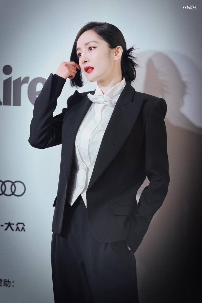 Sau khi xuất hiện, Dương Mịch lập tức leo thẳng lên top 1 tìm kiếm trên weibo, đủ chứng minh sức hút mãnh liệt của bản thân. Nữ diễn viên diện một bộ suit đen phối cùng gilet và sơ mi trắng bên trong. Cô nàng cũng rất cao tay khi biến hóa phong cách với bộ suit này.