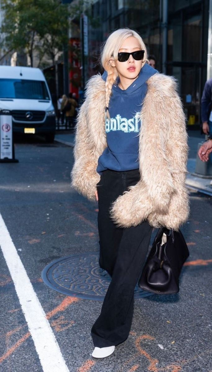 Trong những lần xuất hiện ngoài đời thường, công thức quen thuộc của cô thường xoay quanh hoodie, quần jeans và sneakers – bộ ba mang tính ứng dụng cao. Tuy nhiên, sự khác biệt nằm ở cách nâng tầm tổng thể bằng các lớp layer tinh tế. Áo khoác lông hoặc túi tote cỡ lớn giúp bộ trang phục cơ bản trở nên sang trọng hơn mà không đánh mất sự thoải mái vốn có. Cách phối này thể hiện rõ tư duy thẩm mỹ: tối giản nhưng không đơn điệu.