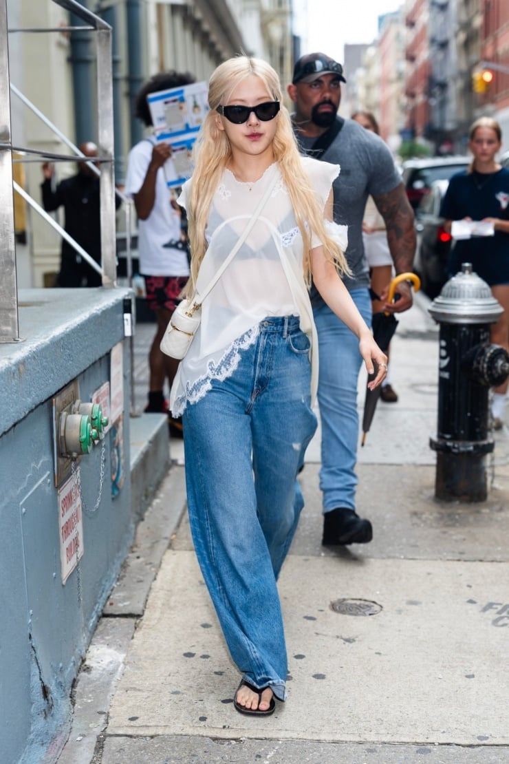 Ngoài ra, thành viên nhóm Blackpink còn lăng xê áo xuyên thấu theo xu hướng khoe nội y, thể hiện tinh thần hiện đại và tự tin. Tuy vậy, cô luôn tiết chế phụ kiện để tránh cảm giác phô trương. Những công thức đơn giản như áo phông kết hợp chân váy da ngắn và giày bệt cũng thường xuyên được áp dụng, chứng minh rằng phong cách hiệu quả không nhất thiết phải cầu kỳ.