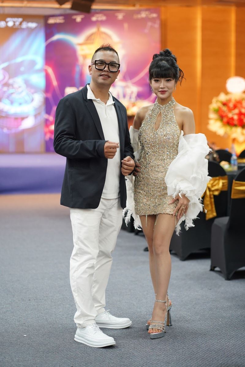 Ông Đào Xuân Hưng cùng một nữ DJ tham dự cuộc họp báo