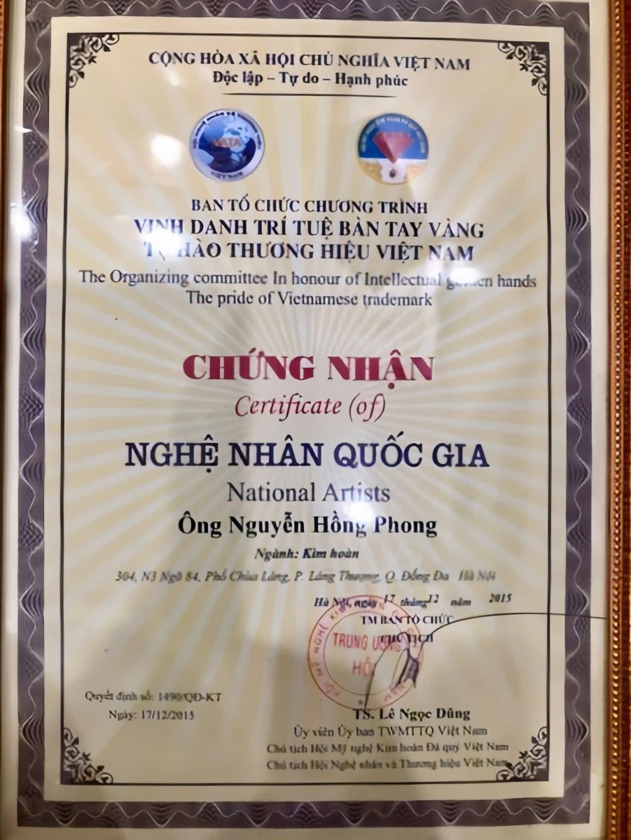danh hiệu Nghệ nhân Quốc gia Nguyễn Hồng Phong
